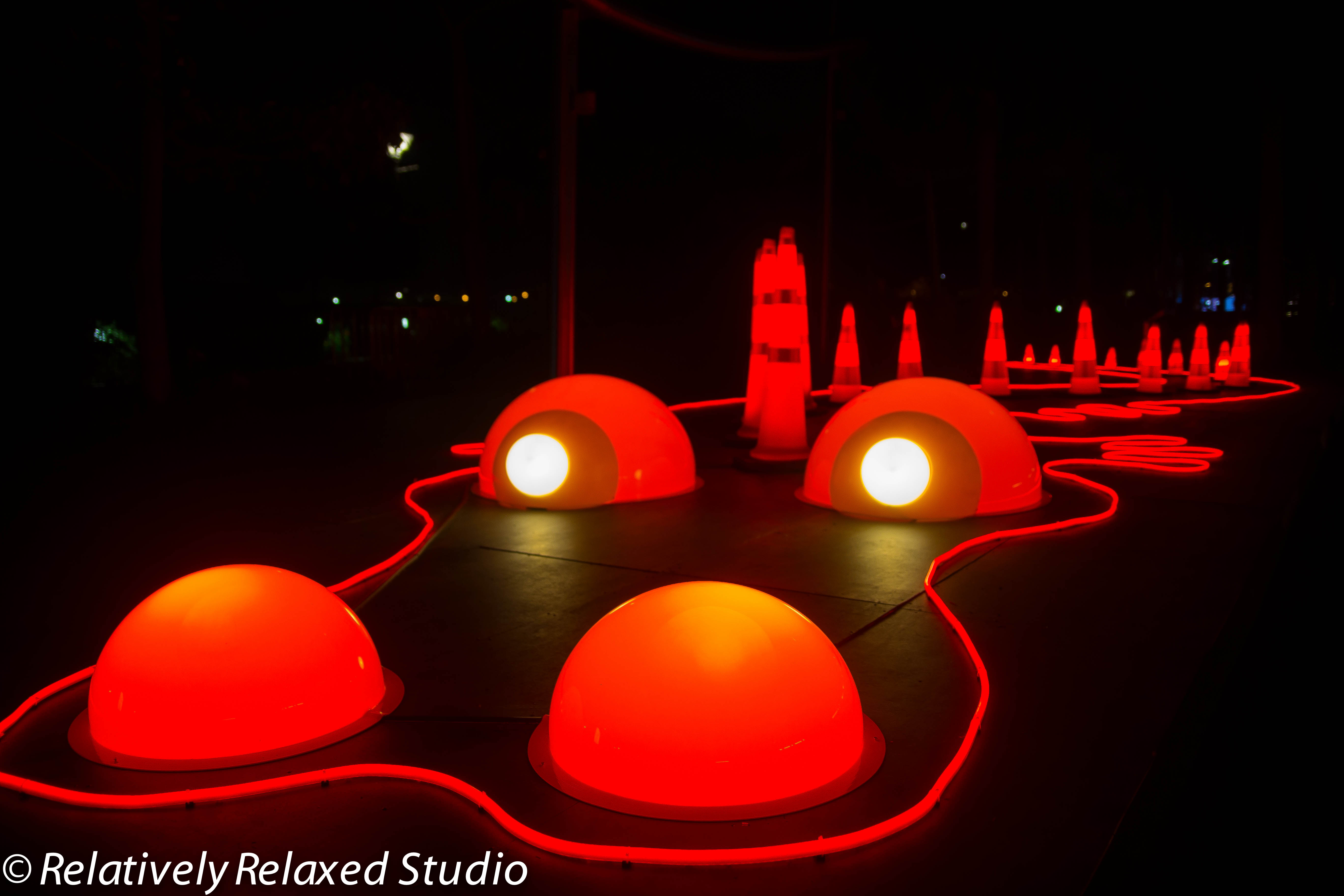 Certain installations however, were not meant to be photographed, but more so to be experienced. Such as the lines of multicolored lights set on the water along the bay. From certain angles they would look like highly organized waterborne fireflies.But they would be too low to take a interesting picture.