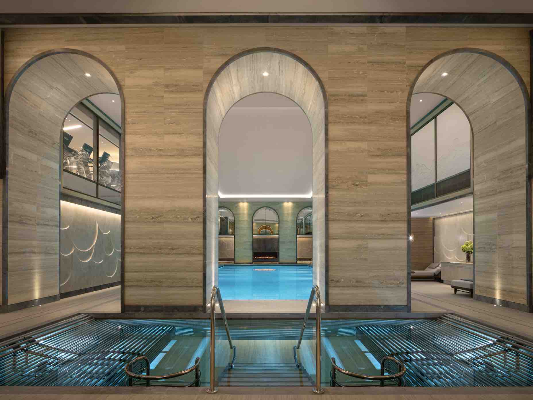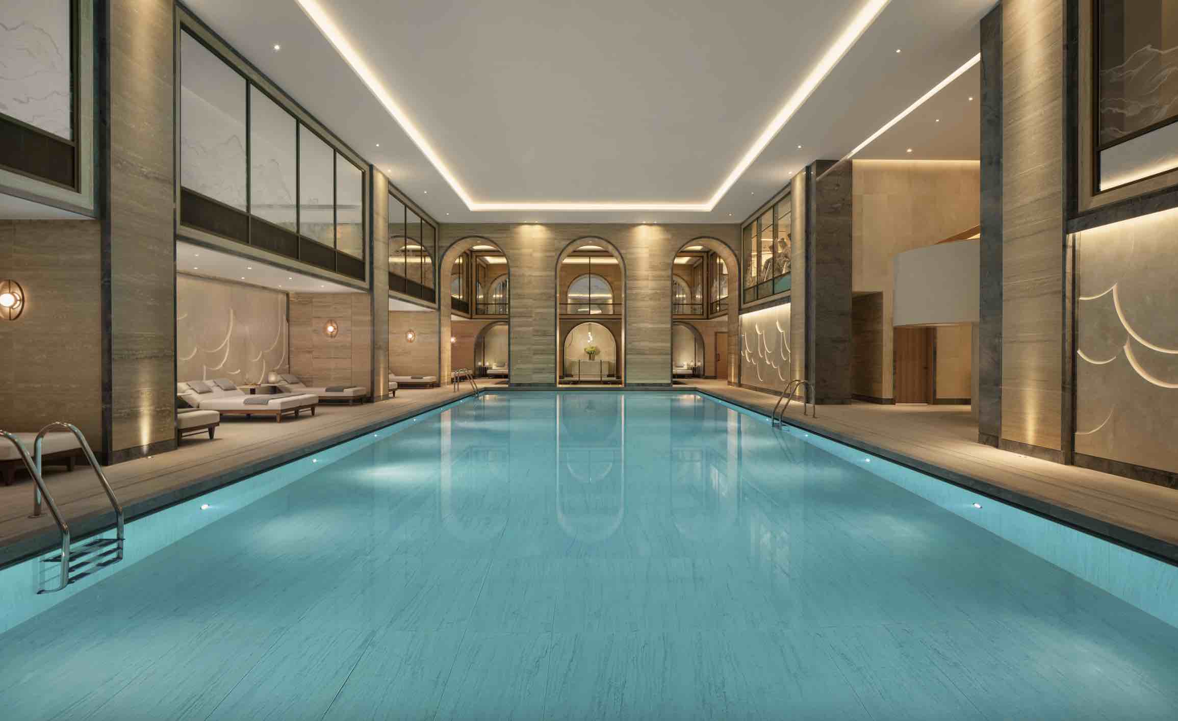 Well-being is integral to Raffles London at The OWO, with a state-of-the-art Guerlain Spa spanning 27,000 sq ft over four floors. Designed by Goddard Littlefair, the spa space offers an impressive range of facilities and services to provide guests with a truly indulgent spa experience. These include a cutting-edge gym and movement studio, a stunning 20m swimming pool surrounded by luxurious loungers, a vitality pool, and steam and sauna rooms. Nine exquisitely designed treatment suites are also available, including three spacious VIP Spa Suites and L’Atelier Guerlain, a private beauty and hair treatment space.