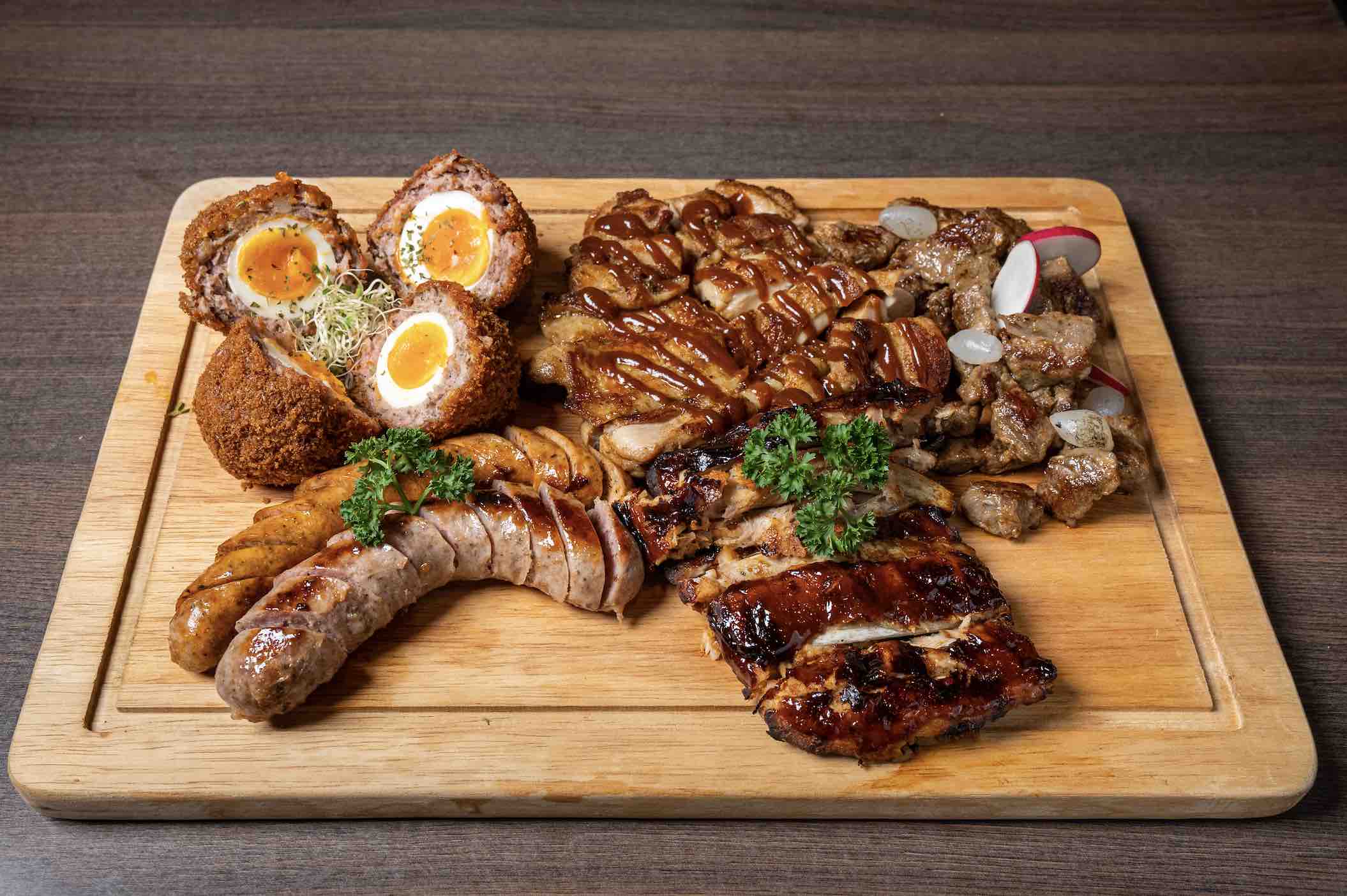 The Party People Platter ($70++) is a delightful combination of fried prawn-paste chicken poppers, beer-battered fish bites, Queen’s special chicken wings, English Scotch eggs, and crispy fries. For meat enthusiasts, the Serious Foodie Platter ($108++) is a true delight. Featuring succulent barbecued pork ribs, chargrilled chicken thighs, seared beef cubes, English Scotch eggs, and flavourful Bangers and Mash, this platter is a gastronomic feast to share.