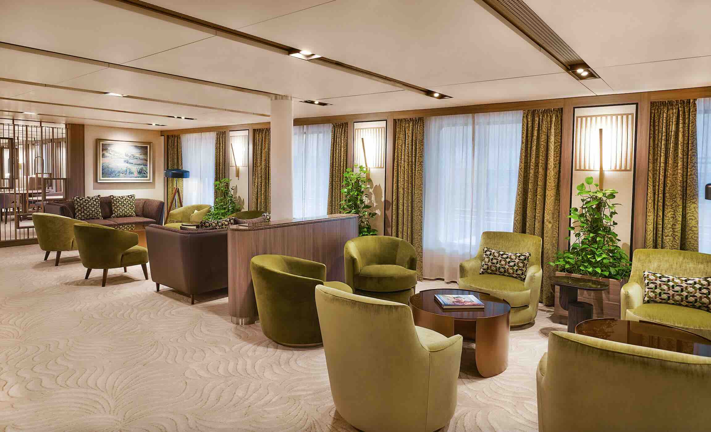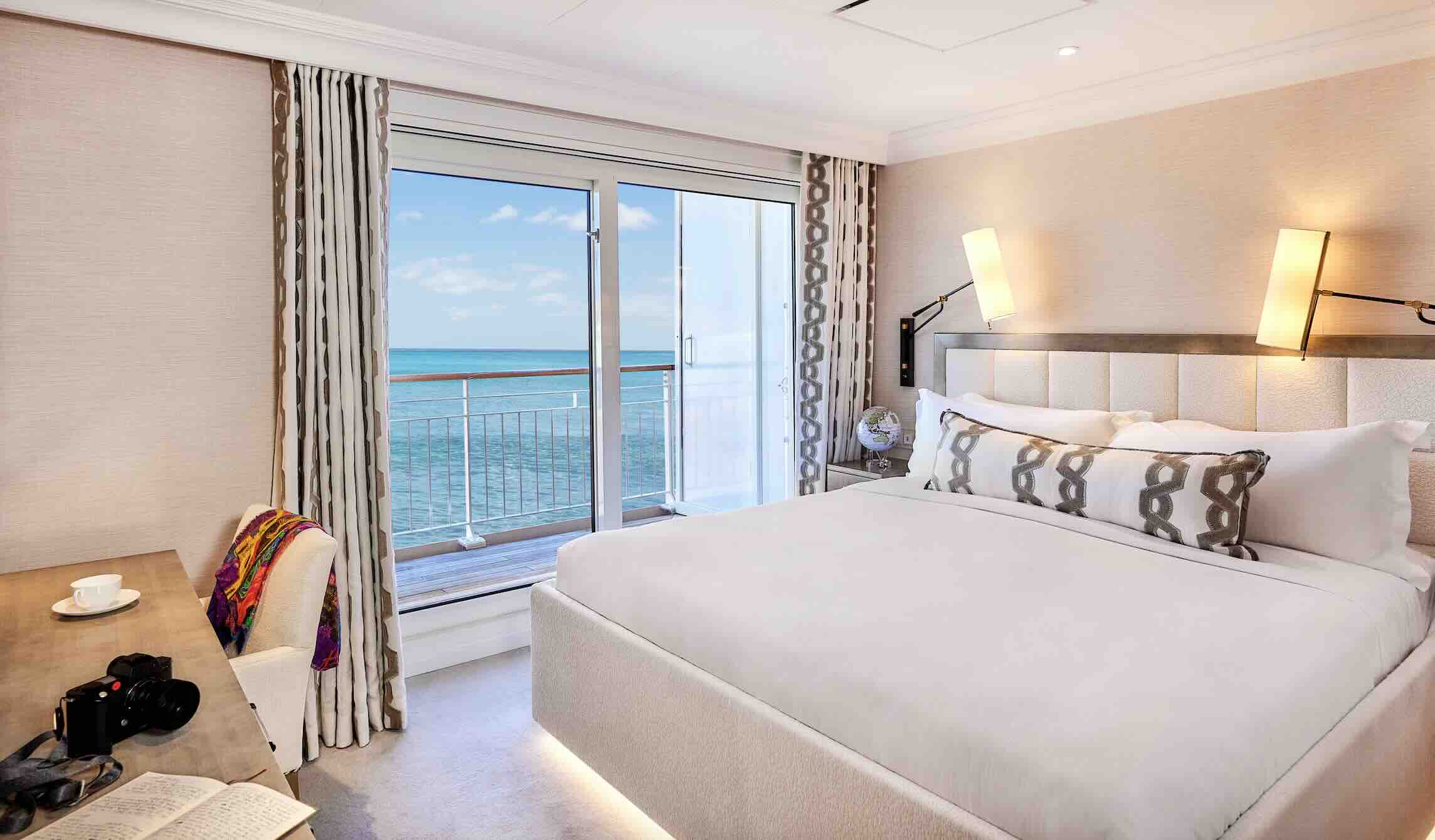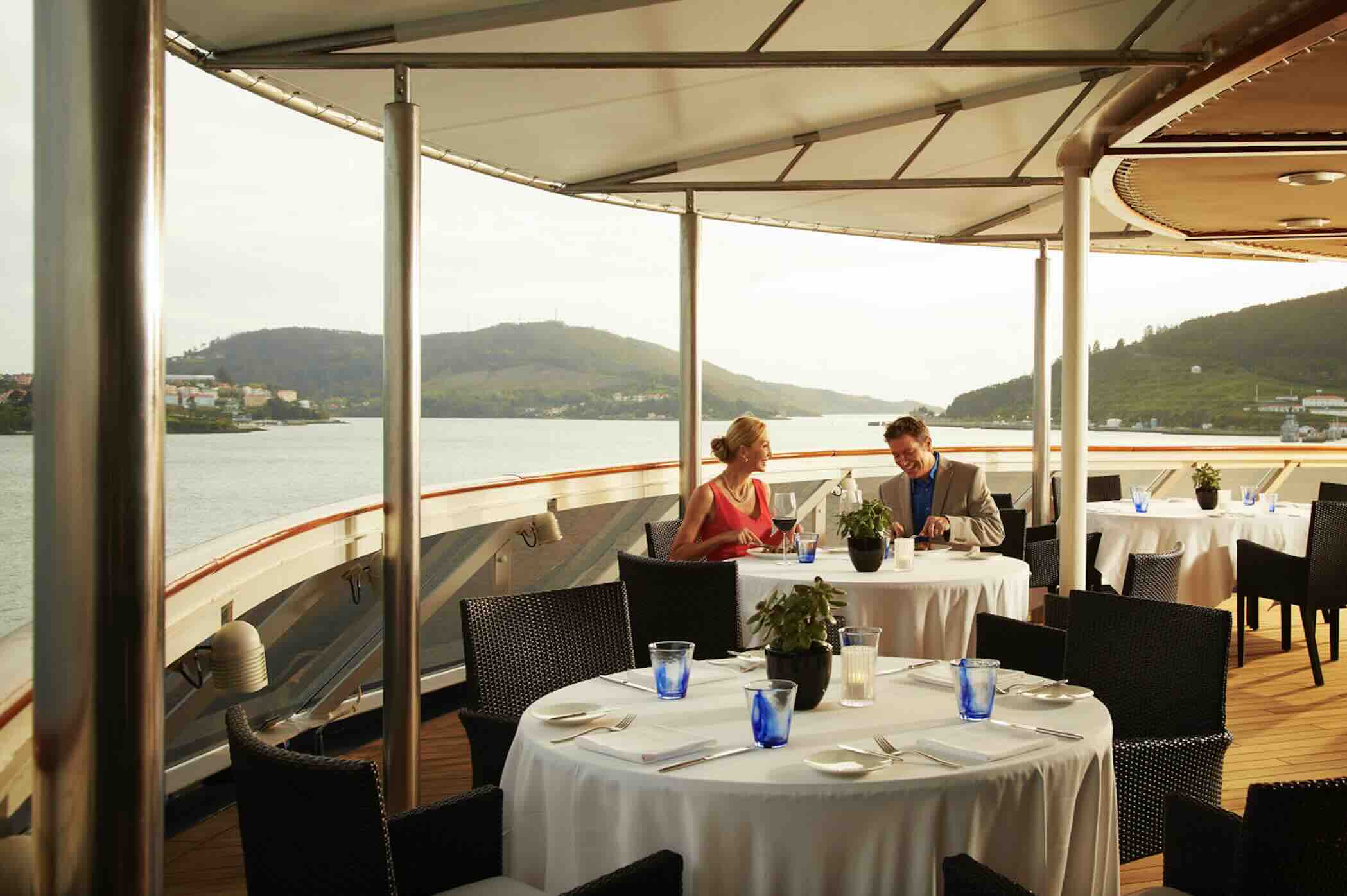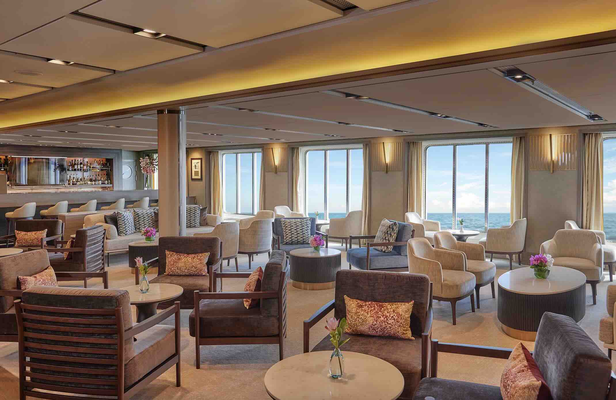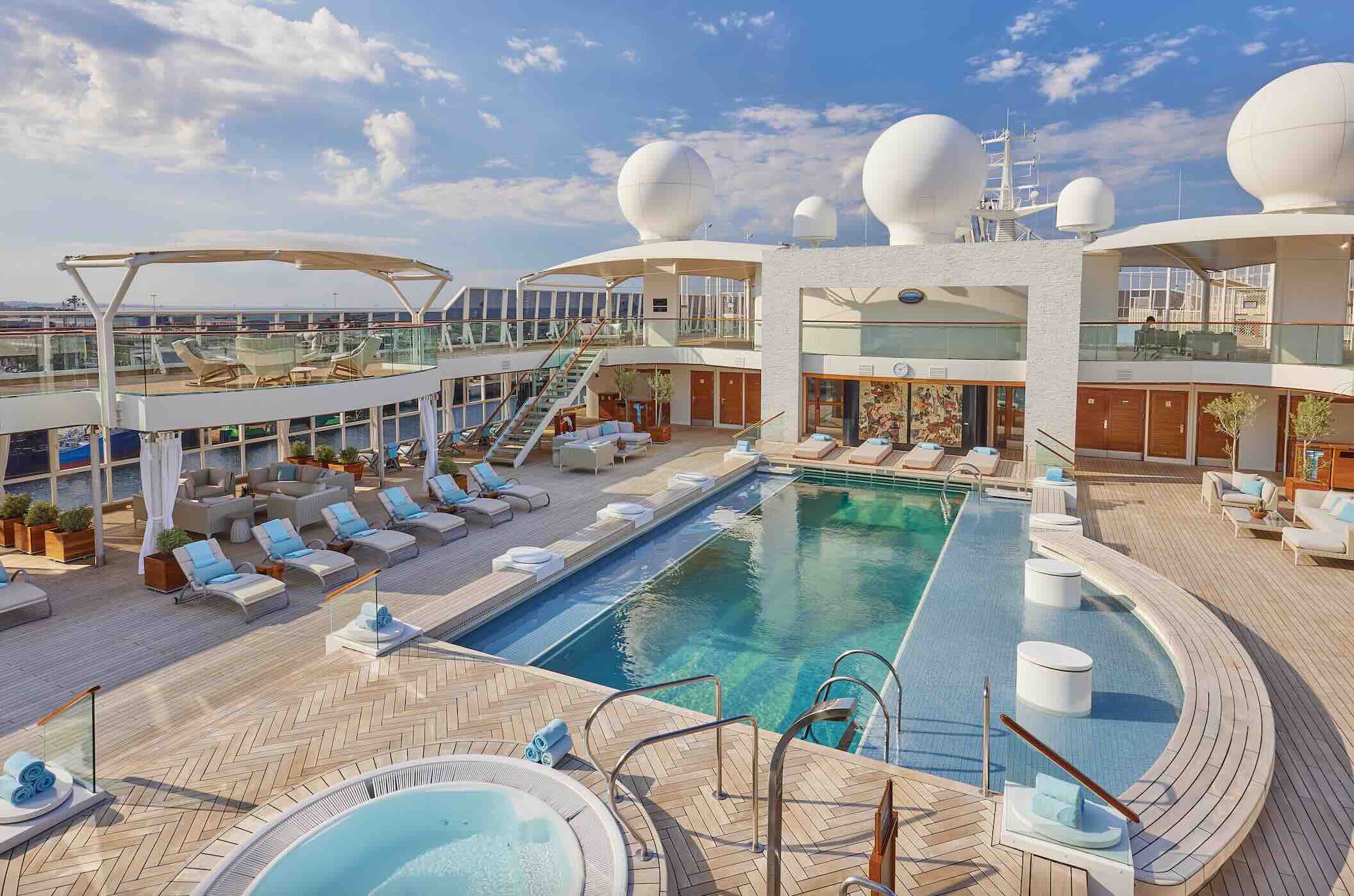 The ship offers myriad services and amenities. A few of note include an art gallery where local artists are invited to display their works on board, Bali beds on deck for a night under the stars, bikes and e-bikes, Fitness Center open 24/7 offering group classes and personal training, children’s play area and hobby room, conference center, diving and snorkeling, video-on-demand and DVD collection, florist, game room, gourmet deli, hiking, housekeeping,
