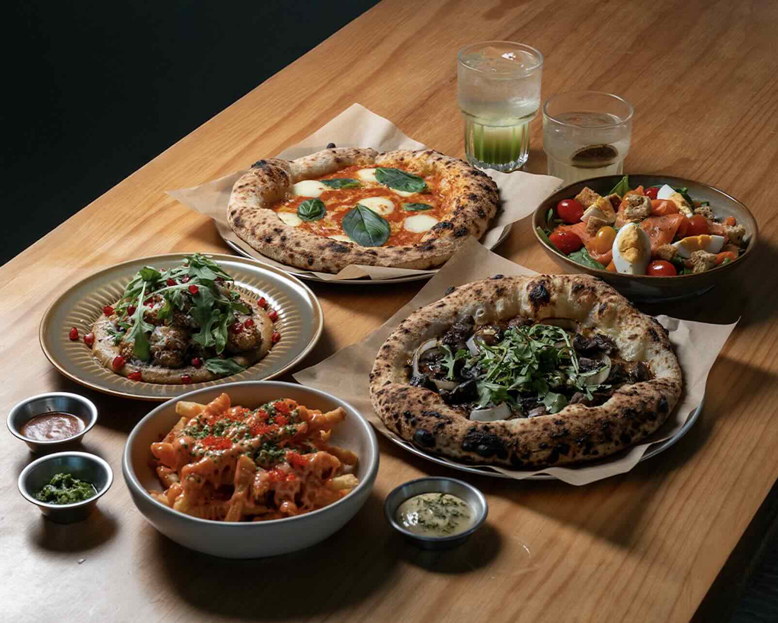 Food comes courtesy of Yeast Side, the homegrown bakery-bar known for its bold sourdough and chill craft beer vibes. Their all-day menu is hearty and honest, led by rustic slope-inspired pizzas like the creamy Foursome with Honey ($21) and the ever-popular Queen Margherita ($18). Sandwich lovers can bite into loaded focaccia creations like the Mr Crabs ($18)—a mash-up of crab, crispy hash brown and pickled onion—or the plant-powered Mediterranean ($15), featuring fried cauliflower and hummus.