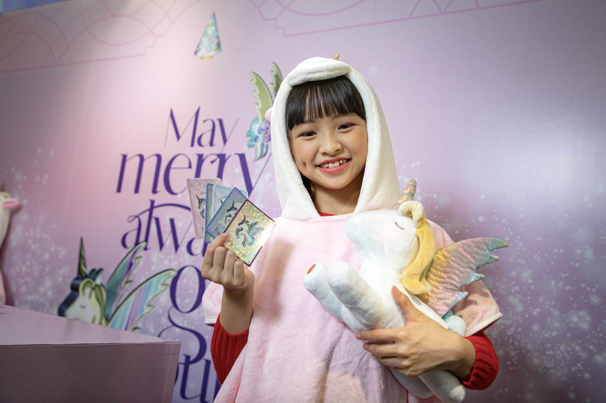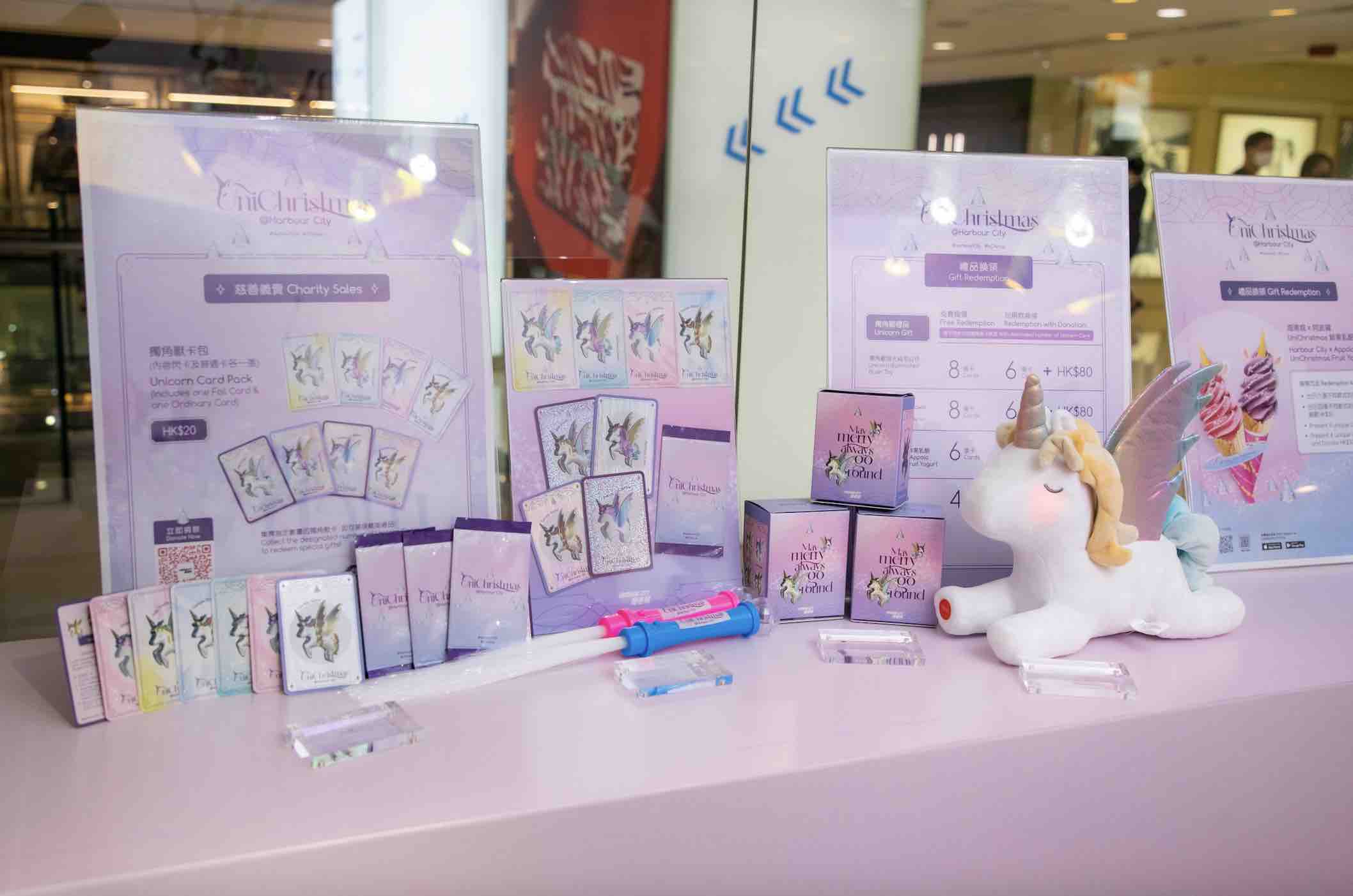 Harbour City opens “UniChristmas Pop-up Store” at the same time to hold charity sale for a series of unicorn-themed premiums. Proceeds go to Hong Kong Blood Cancer Foundation. Upon donation of designated amount, you can receive Unicorn Card Pack of different characteristics (includes one Foil Card and one Ordinary Card) or Unicorn Mystery Box (includes one Fragrance Ornament). There is an AR effect on each Unicorn card so that you can see the unicorn appear in real life environment through your phone.