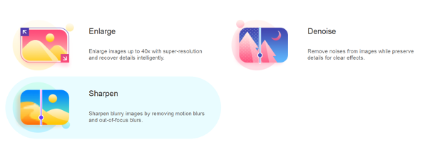 VanceAI software does a lot of things to a picture, which is summed in three categories. When you download this AI software for PC, you will be given three options about what you want to do with an image. These are Enlarge, Sharpen, and Denoise.