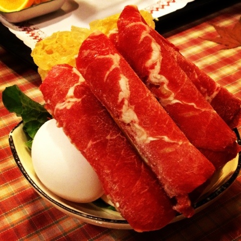 Slices of beef, eggs, fried tofu skin and vegetables were thoughtfully provided on the side for us to add into our steamboat.