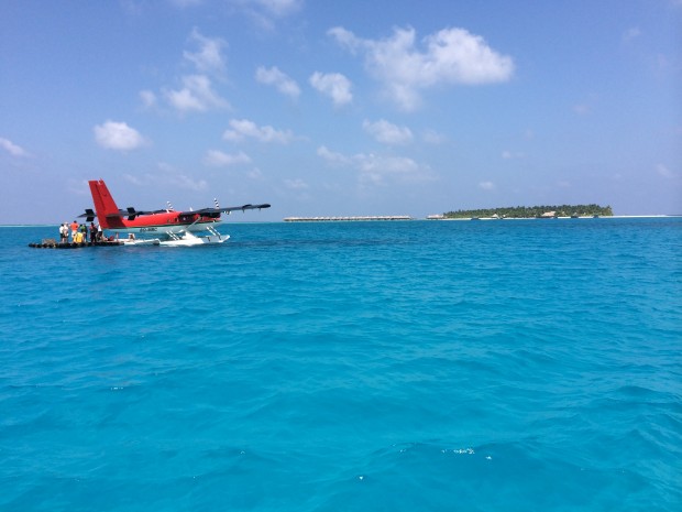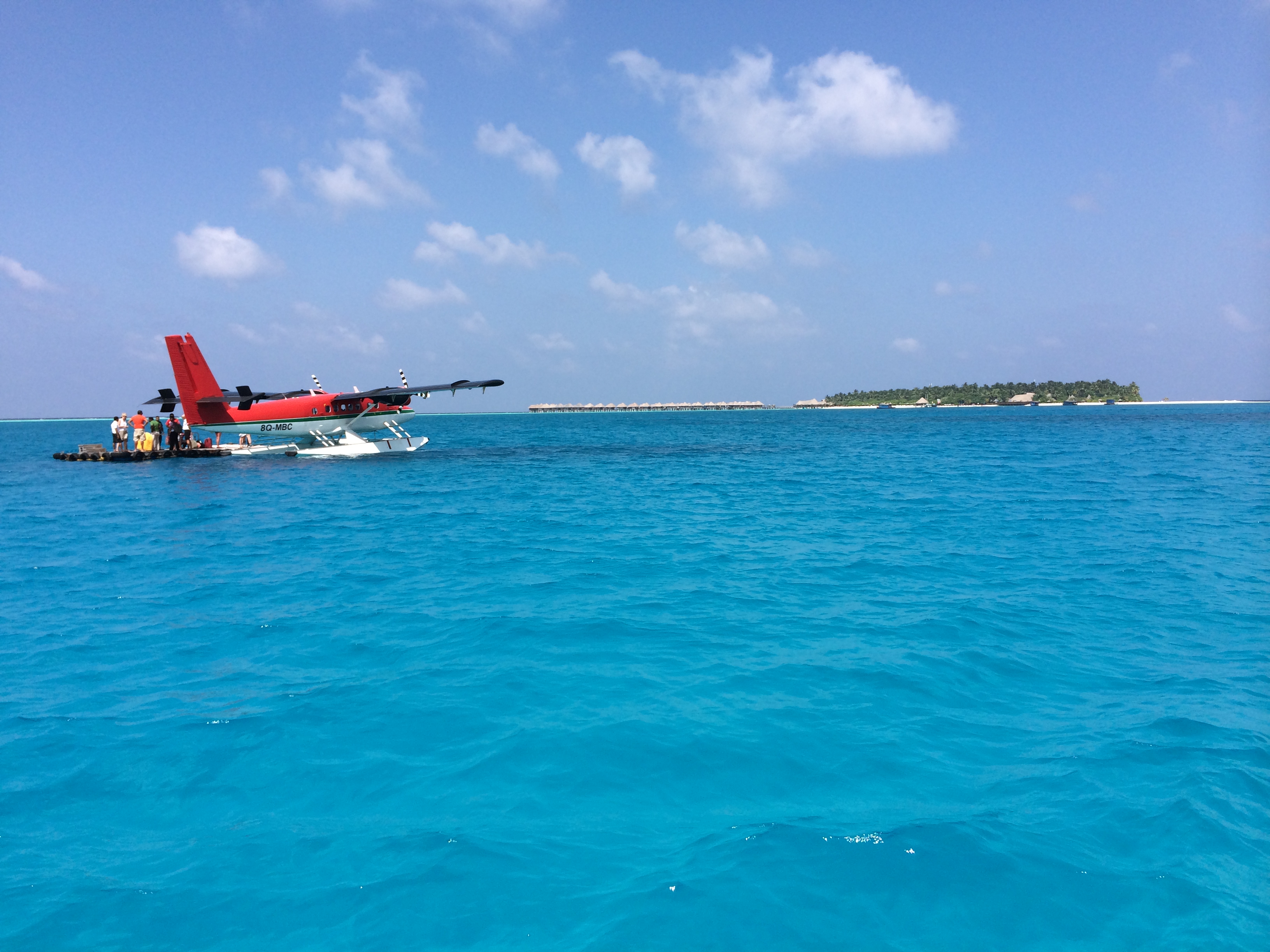 To get to Vilu Reef, we took a 5-minute bus ride from Male International Airport to the Seaplane Terminal to board a seaplane. The island is approximately 147 km away and took us a 50-minute ride. It was an eye opener but not a comfortable experience as it was so small and ventilated by the air breeze. The rewarding part is the good view of islands and different shades of blue sea bed as you fly by.