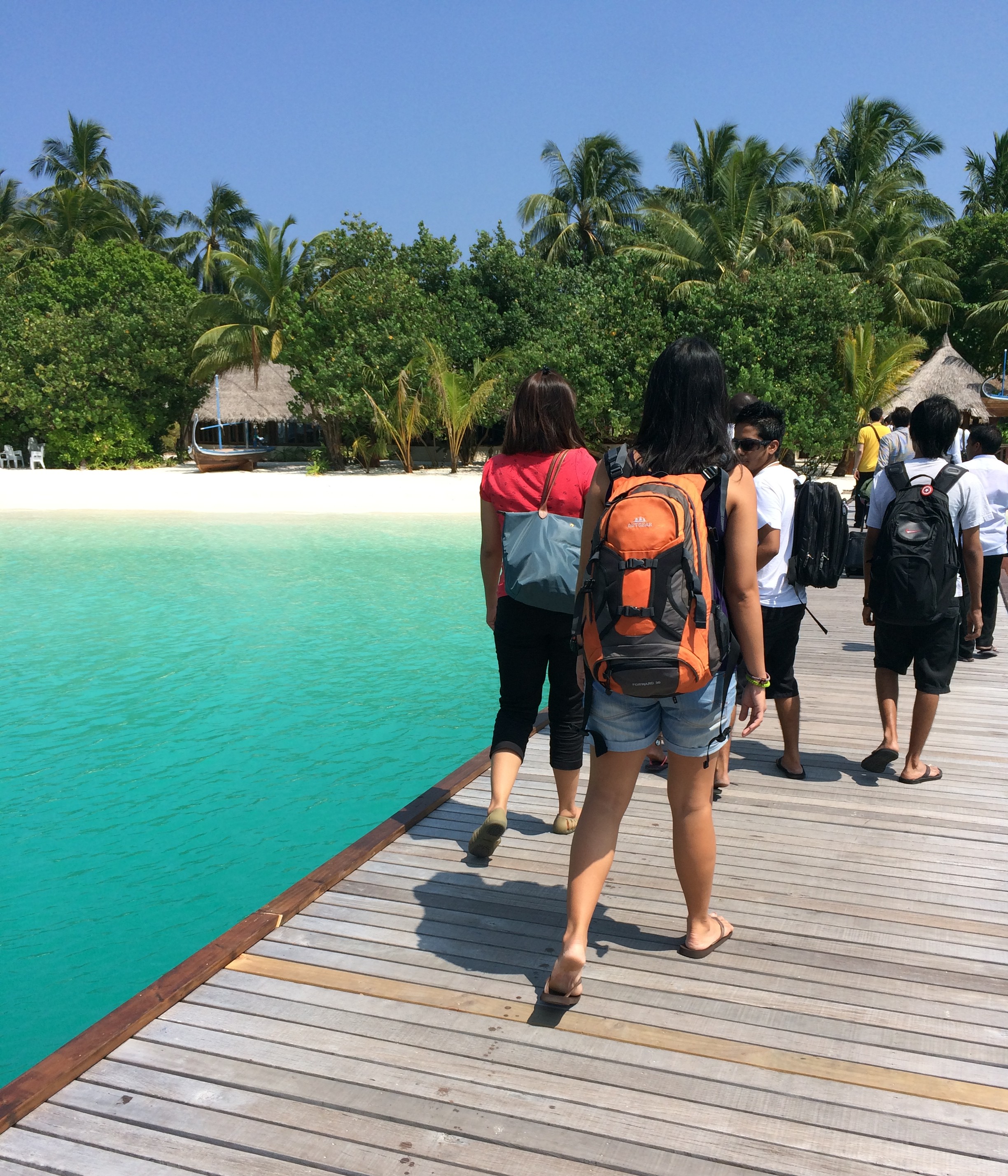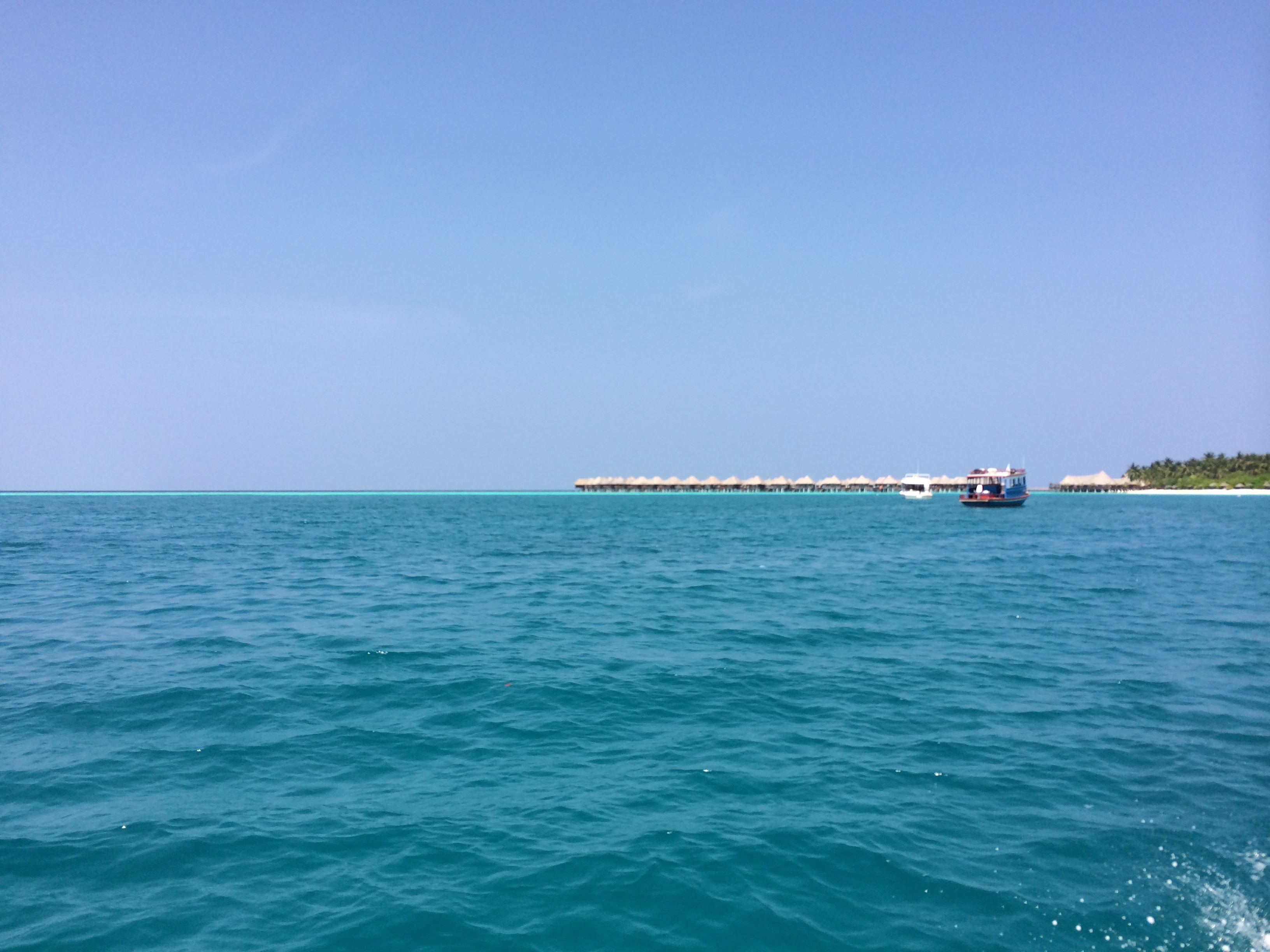 We alighted at a floating platform some distance away from the resort and took a 5-minute boat ride to the resort. Long journey but trust me, it is all worth it as you see the villas and bright green sea bed from a distance!