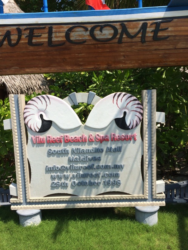 Vilu Reef Resort and Spa was officially opened in 1998. Its clientele are mainly European. We were warmly welcomed with scented cooling towels from the journey. During our stay, we were pleasantly surprised to meet a Singaporean couple there on honeymoon and a Singaporean diving instructor!
