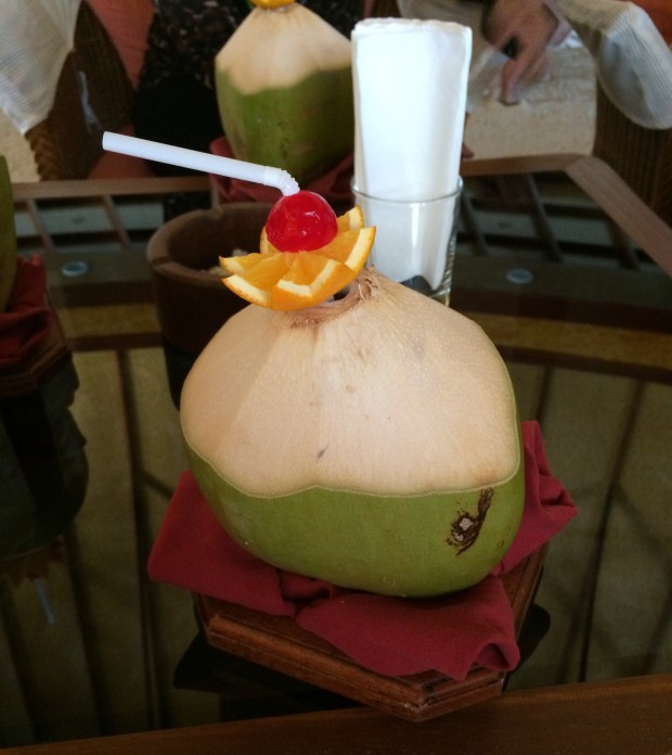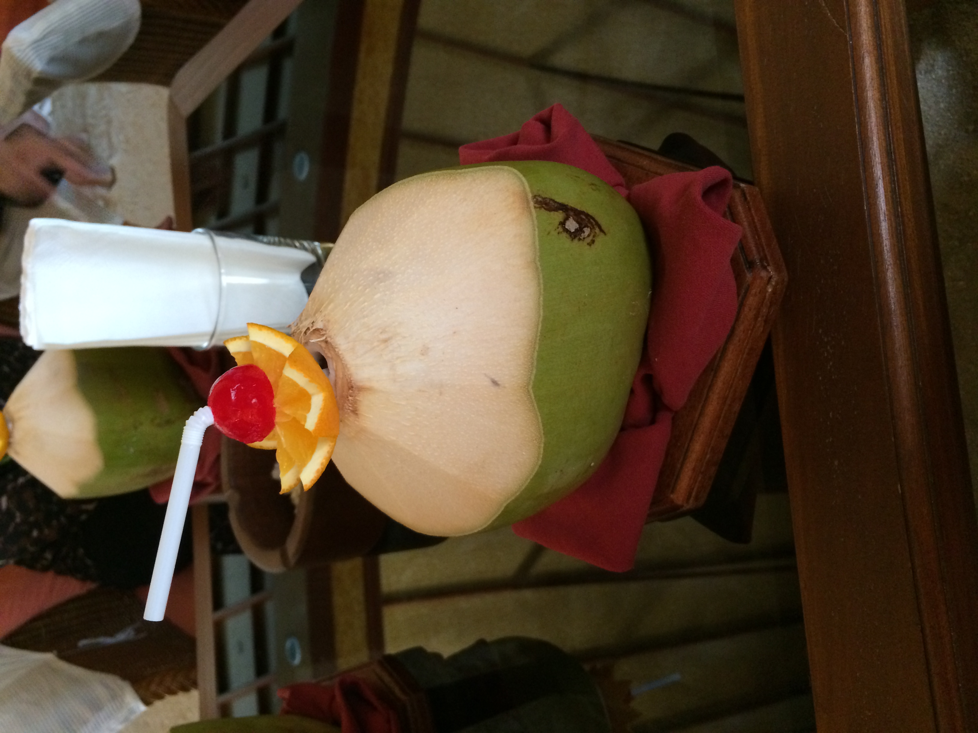 Our welcome drink at the bar, nicely prepared and laid out on the table.