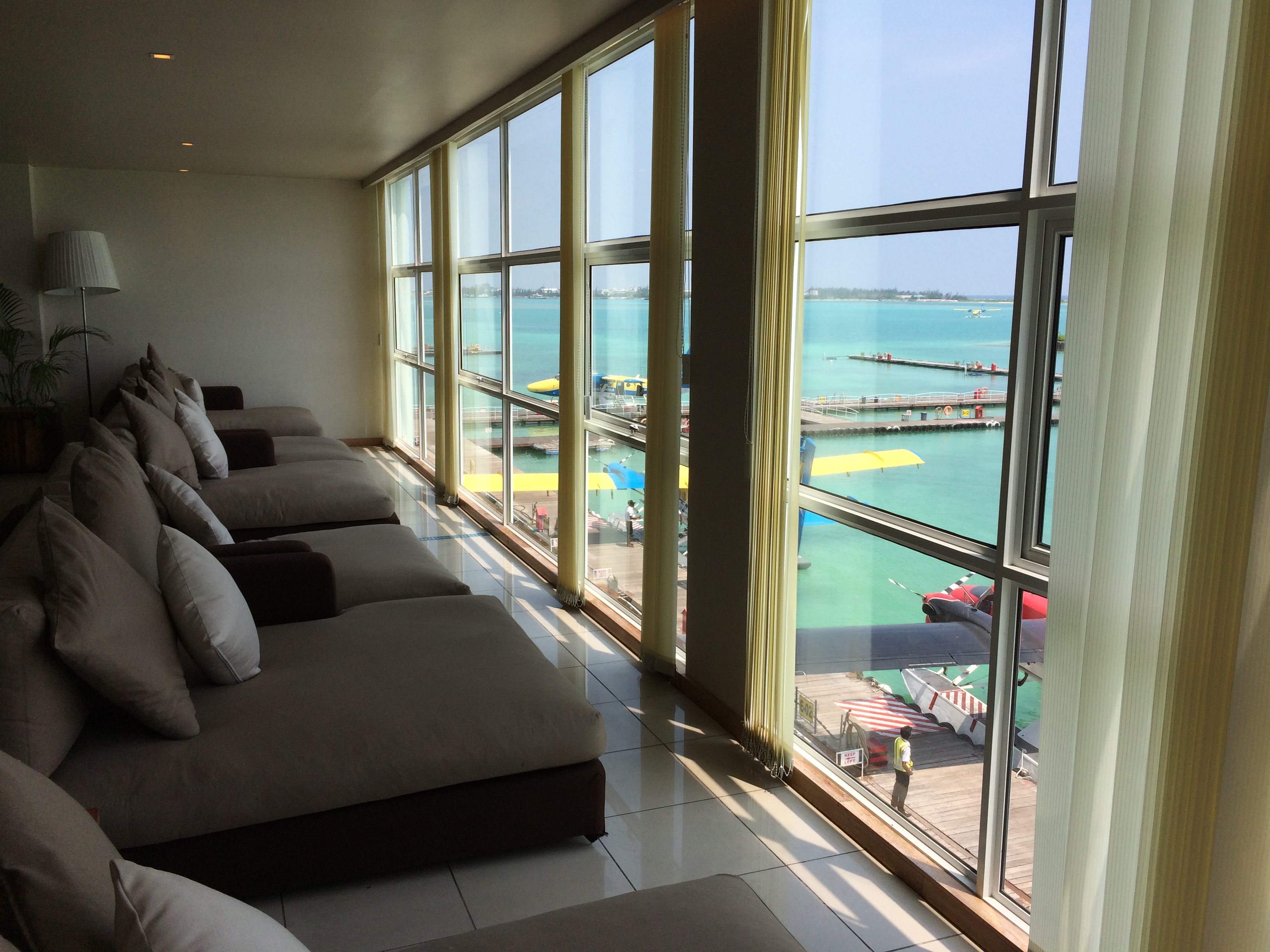 Waiting at the VIP Lounge for time to board the seaplane. VIP Lounge with gorgeous view exclusive to guests of few resorts, Vilu Reef is one of the few exclusive resorts.