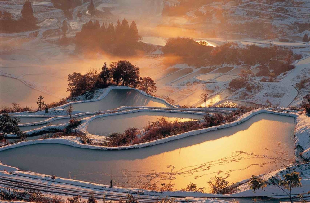 Hoshitoge Rice Terraces at Tokamachi, Miyagi Prefecture is a photogenic rice field that is known for its tiered, rolling terraces and slopes that sits along the Japanese countryside. Throughout the four seasons, the scenery is beautiful, but even more extravagant during the winter months where the snow makeup is spread out across the fields especially with the reflection of sunlight, offering a landscape that appears like a fairytale town! It’s breathtaking scenery will leave you in awe and amazement!
