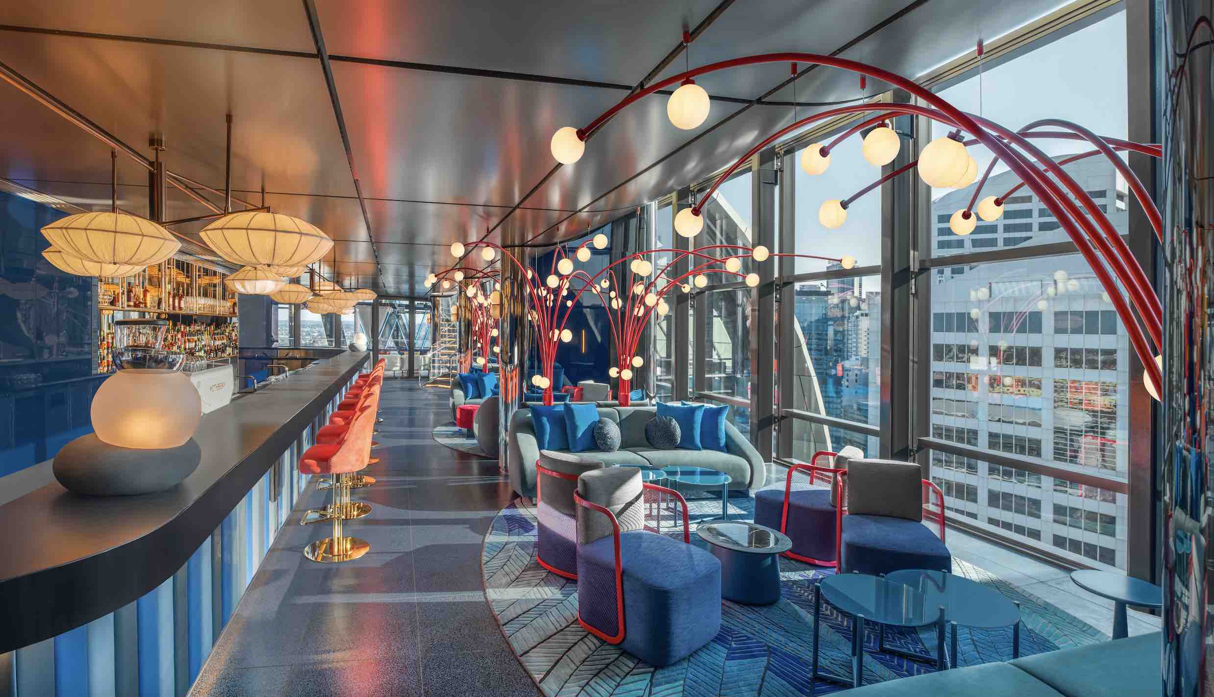 A beacon at the apex of Darling Harbour, the WET Deck (pool) level bar evokes an underwater world with coral-inspired lighting and is a great spot for casual tapas and cocktails. Meanwhile, Level 30 above takes things up a notch with elevated cocktails, a menu of vintage Champagnes by the glass, and the above-sea-level décor of a superyacht.