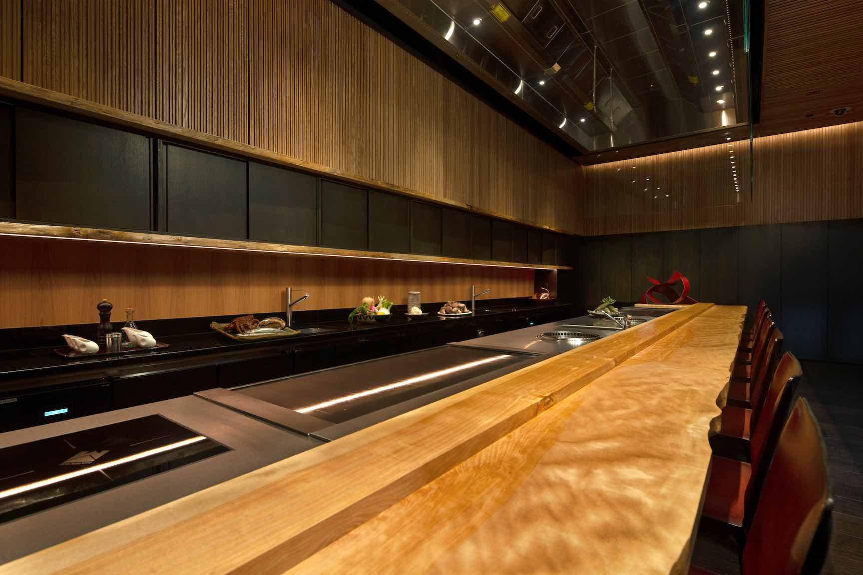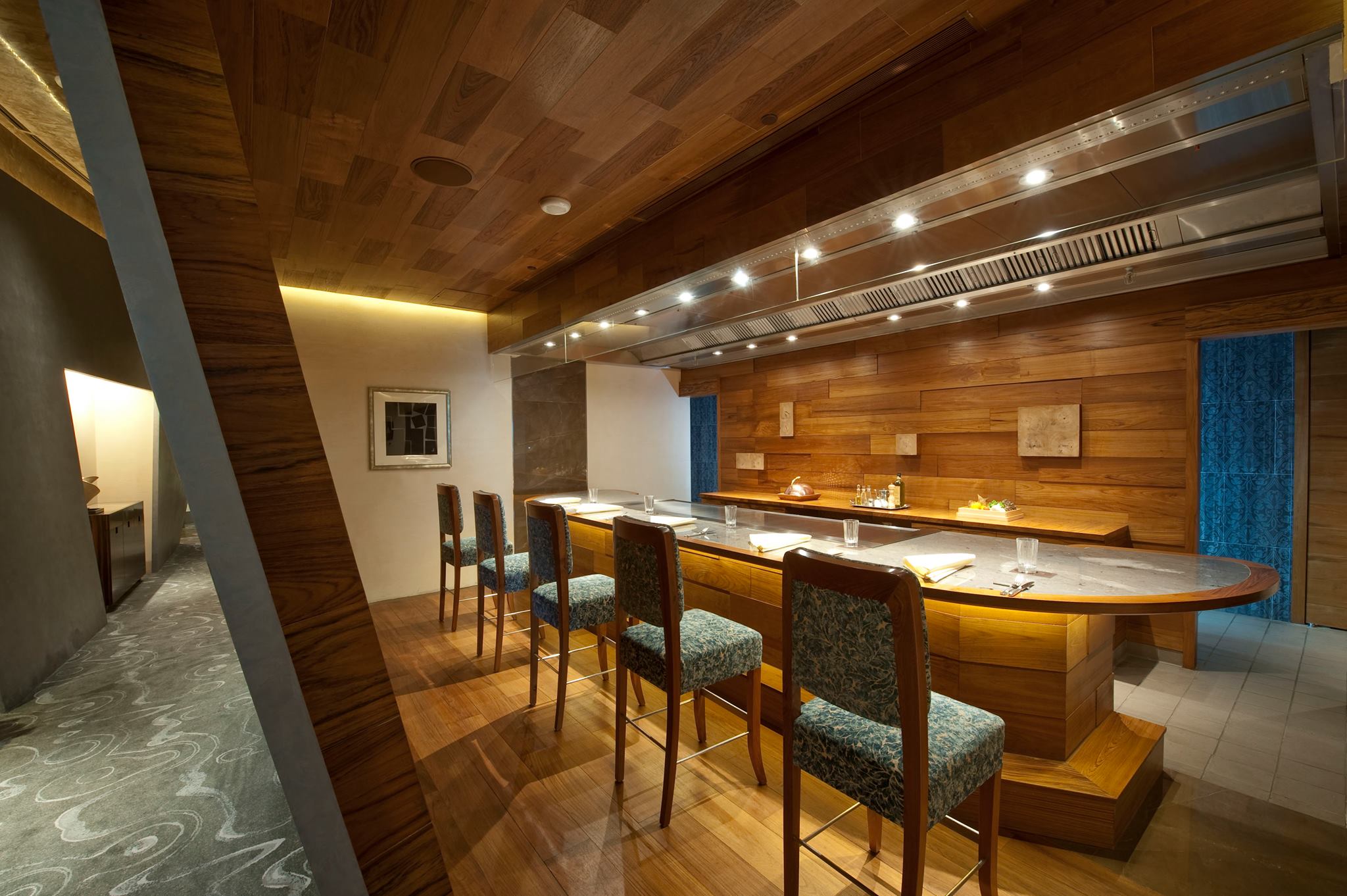 Time-honoured carpentry by craftsmen from Shikoku, Japan, is imbued in a dining table at the chef’s table room, forged using Kaba Zakura (Japanese cherry) with natural wood lines. Known for its rich colour and fine-grained texture, the cherry wood’s unique characteristics and annular lines become more prominent and distinct over time after rounds of polishing.