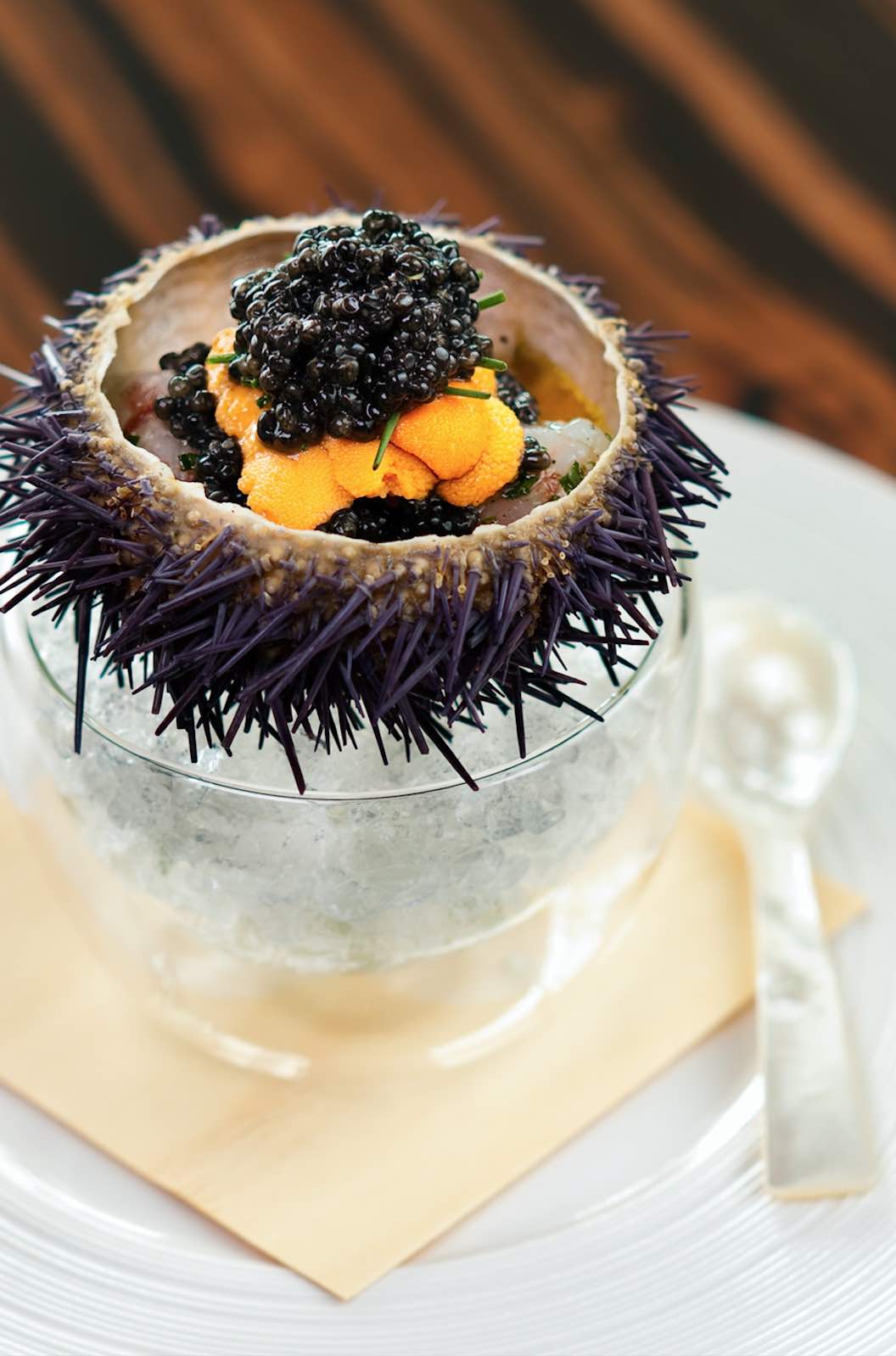 In the kitchens, Waku Ghin is inspired by the best produce across different seasons and regions such as Hokkaido, Okinawa, Miyagi and Toyoma – from ama ebi (sweet shrimp) and kanburi (winter yellowtail) in winter, to shiro ebi (white shrimp) in spring time, Hokkaido uni and anago (saltwater eel) in summer time, and prized wasabi from Shizuoka, Chef Tetsuya’s birthplace.