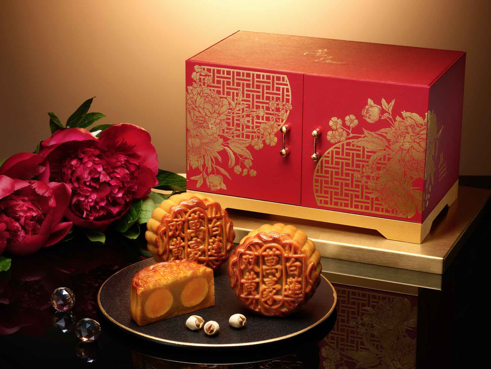 Fusing Oriental elegance and utility, the red mooncake box boasts an auspicious colour that symbolises happiness and good luck; gold ornate peonies symbolise romance, joy and prosperity; two layers of drawers – put this gorgeous box in good stead for multiple uses.