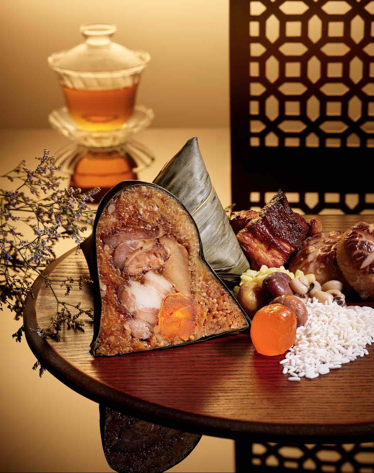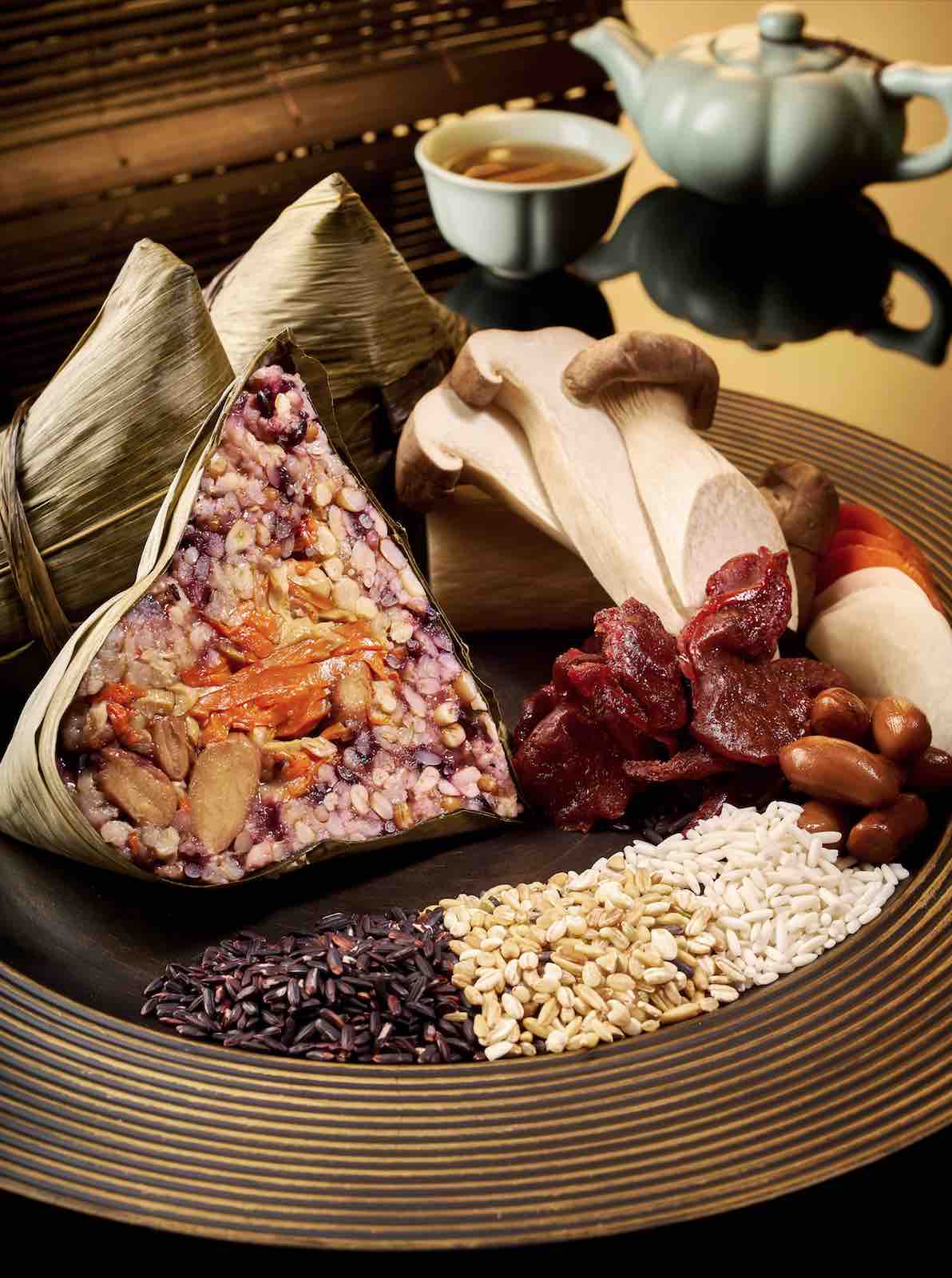 Also making its debut is the nutrient-packed Wild Mushroom 5-Grain Vegetarian Rice Dumpling (野菌五谷素粽) that packs a punch of varying textures and flavours with every mouthful. Rich in dietary fibre, nutrients and vitamins, this healthy interpretation of the well-loved rice dumpling scores high on the taste scale too. The leaves swaddle a dazzling variety of fillings: black truffle, cordyceps flower, king mushrooms, married with vegetarian bak kwah, black fungus, turnip, carrot, braised peanuts and cabbage, and a medley of grains including brown rice, sorghum rice, oats, barley and pearl rice. In this East meets West creation, each parcel is elevated with the fragrant notes of black truffle.