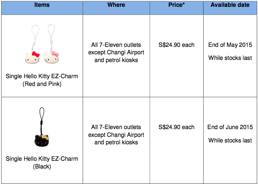 Here’s the detail price and location list of your favourite Hello Kitty EZ-Charms: