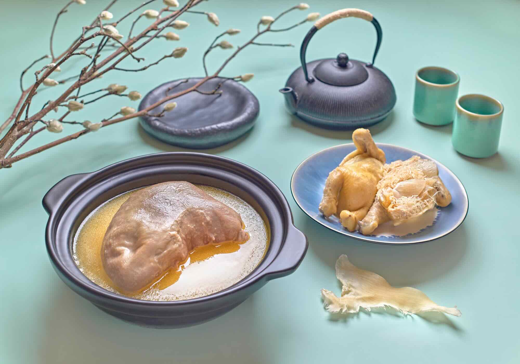 Double-boiled Superior Soup with Whole Chicken and Shark’s Fin stuffed in Pig’s Maw: This signature dish features Pig Maw expertly stuffed with deboned French ‘An Xin’ chicken and premium shark’s fin, then simmered to perfection in a rich, aromatic broth infused with the essence of old hen, chicken feet, chicken bones, lean meat, and a touch of white pepper. The result is an indulgent, deeply flavourful dish that balances the tenderness of the chicken meat and shark’s fin, and a savoury, comforting broth.