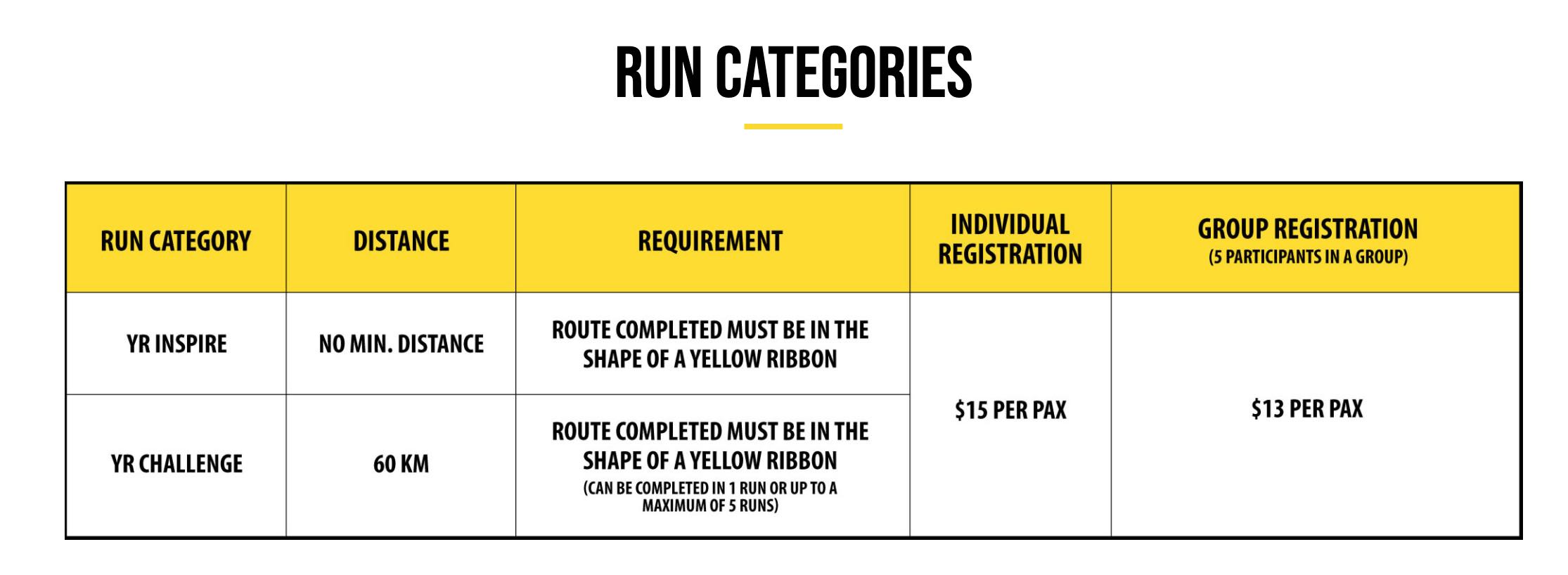 As part of this year’s fundraising efforts, participants are encouraged to submit screenshots of each completed route to www.yellowribbonvirtualrun.sg/signup. Participating corporates will be matching every yellow ribbon formed by registered participants with a $10 donation. The target is to raise $100,000 for the Yellow Ribbon Fund.