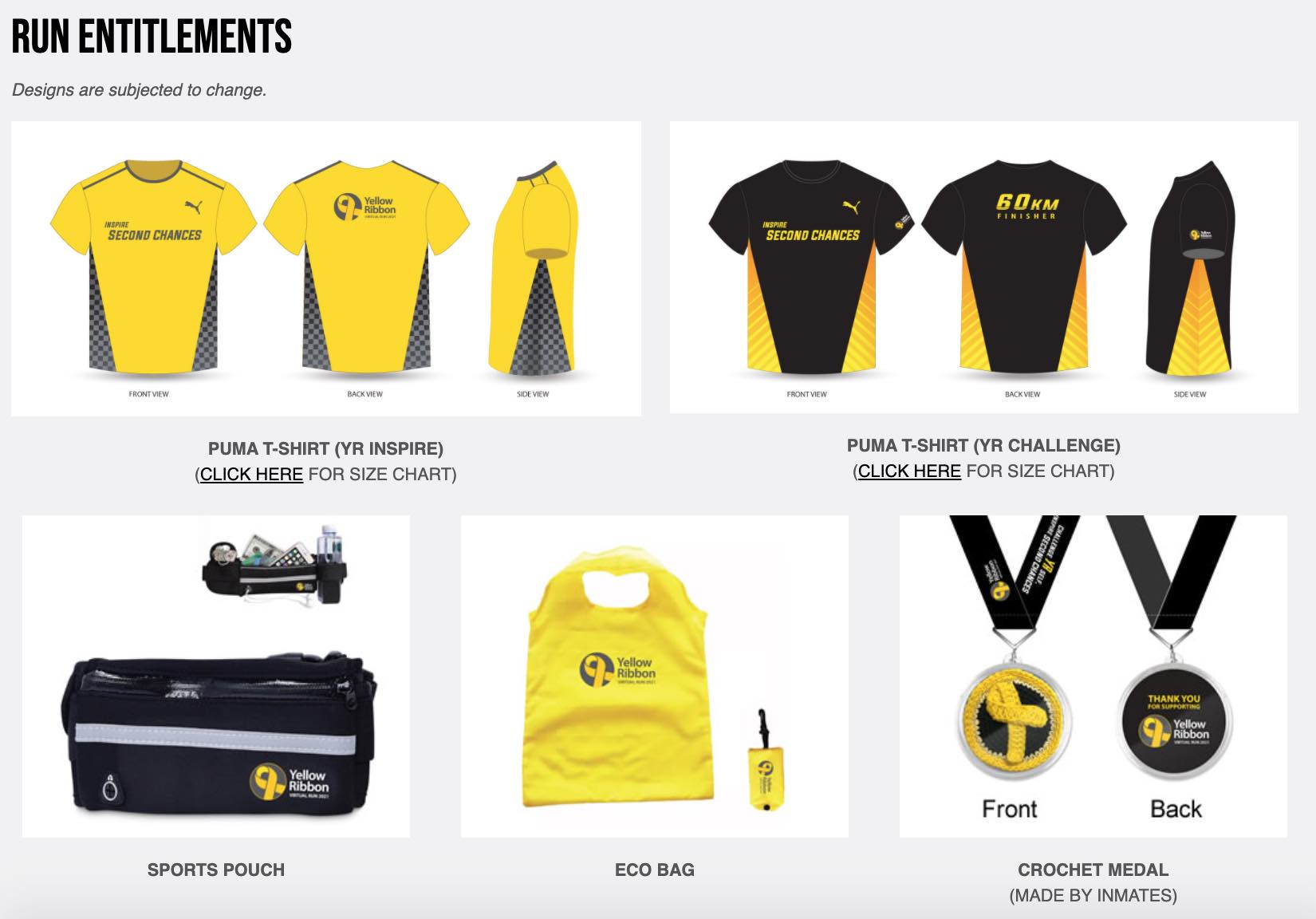 In the month of September, members of the public can participate in two categories of the virtual run – YR Inspire or YR Challenge – and run, walk or hike routes of their choice in the shape of a yellow ribbon as a pledge of support for the second chances. The YR Inspire category does not have a minimum distance requirement, while the YR Challenge category challenges participants to complete 60km in up to five separate runs within the grace period of 1 to 30 September 2021. All finishers will be presented with an exclusive medal specially crocheted by inmates.