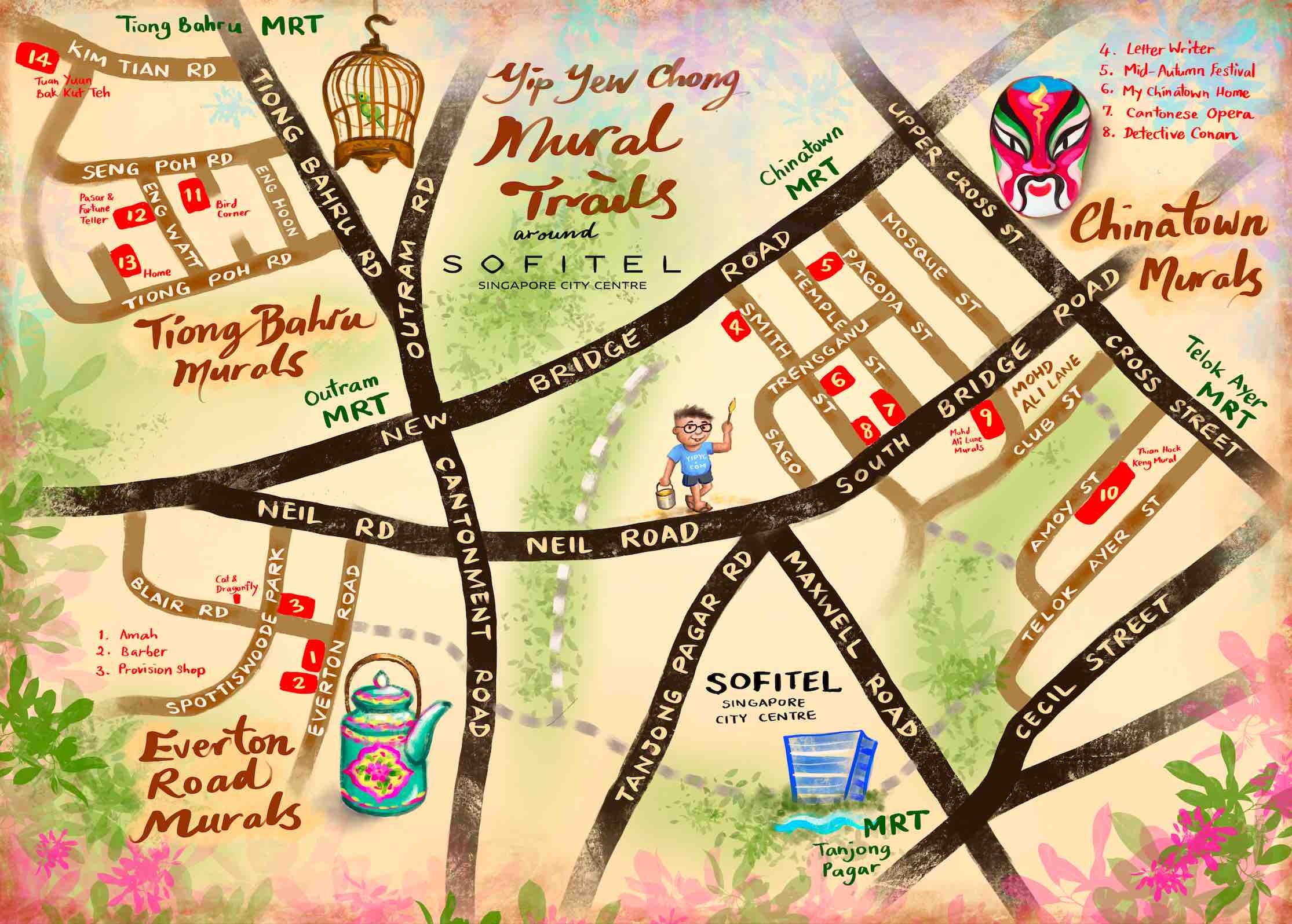 “Sofitel Hotels have always supported the arts and we are proud to showcase such an incredible artist as Yip Yew Chong with an exhibition that will allow our guests, loyalty members, VIPs and team members to step back in time to a golden era in Singapore’s past. The hotel stands near the scene of one of the artworks, so people will be able to get a real sense of how much the city has developed over the years,” said Wouter de Graaf, General Manager of Sofitel Singapore City Centre.”Tanjong Pagar is such a colourful neighbourhood and the hotel stands within a short walk to many of Yew Chong’s murals in nearby Everton Park and Chinatown, so it’s the perfect spot to immerse yourself in the works of this amazing artist.”