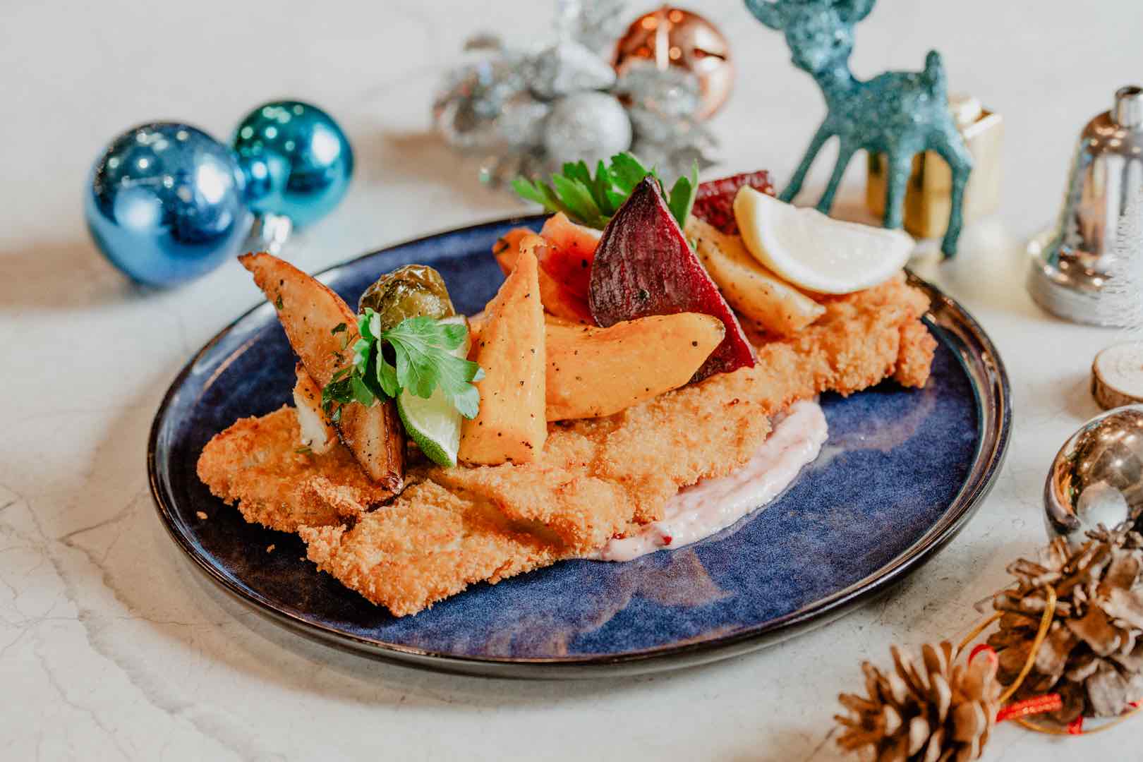 Turkey Schnitzel for a take on a Christmas classic, and Pork Wellington, stuffed with Parma ham, mushroom puree, and baby spinach.